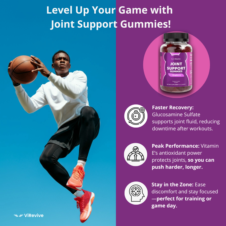 Experience the delicious way to care for your joints with Joint Support Gummies. Formulated with Glucosamine Sulfate and Vitamin E, these raspberry-flavored gummies help replenish cartilage, support tendon tissues, and maintain joint fluid—key to preventing breakdown as you age or push your limits. Perfect for athletes and anyone seeking relief from joint discomfort, they offer a tasty solution to support mobility and joint health.*